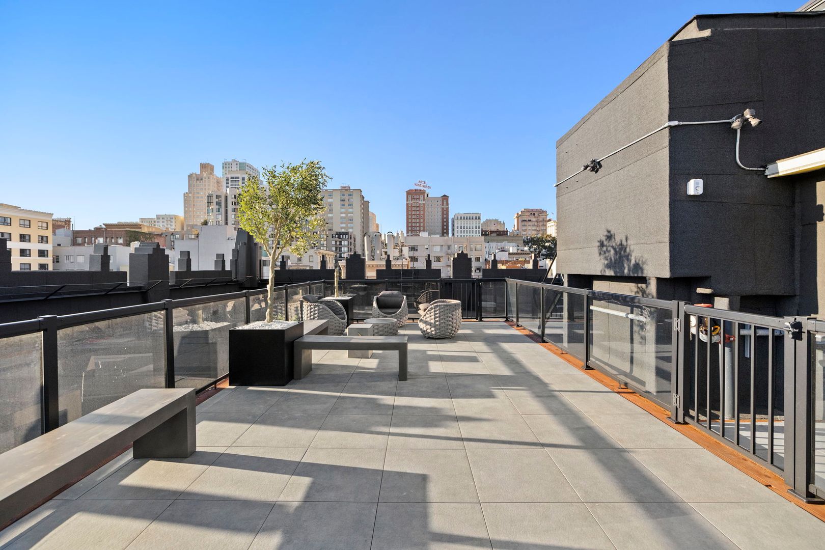 Opportunities to live in brand-new construction in this part of San Francisco are few and far between. At 693 Sutter, you’ll discover thoughtfully designed residences that elevate city living with modern finishes, refined details, and a prime location. One of the building’s standout features is the expansive rooftop deck, offering multiple separate seating areas designed for privacy and relaxation—perfect whether you’re hosting friends or unwinding with city views.
